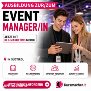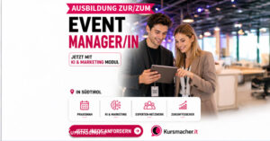 🗓️👩💻 Event-Planer/Manager-Ausbildung in Südtirol 🧑💻🧑🏫 In Präsenz und Online – JETZT mit KI & Marketing-Modul 👉 Nutzen: Sie lernen, eigene Events oder Events für andere im Hauptberuf oder Nebenberuf zu planen und zu organisieren 👉 Der Event-Manager hat einen äußerst abwechslungsreichen Beruf, einen sehr guten Verdienst und setzt aber auch eine gewisse Flexibilität und Ausdauer […]