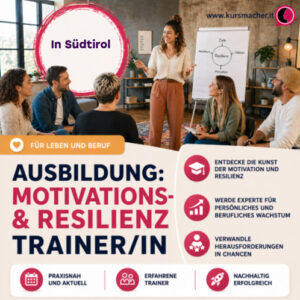 Ausbildung zur/zum Motivations- & Resilienz-Trainerin/Trainer 2026/27 Stärke dich selbst und andere, motiviere und begeistere! Beschreite den Weg des persönlichen und beruflichen Erfolgs. 7 Module – in Bozen & Outdoor in der Natur „Begeisterung verleiht uns Flügel, sie macht uns regelrecht genial.” Andrè Stern Was kann ich mit dieser Ausbildung machen? Nach Abschluss dieser Ausbildung zum […]