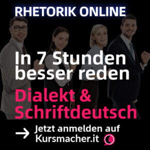 Rhetorik Online 🎤 In 7 Stunden besser reden 🚀 Dialekt und Standarddeutsch. 🗣️ Mit den Rhetorikexpertinnen/-experten von Kursmacher.it ✨ Ziel 🎯 Rhetorik-Basics an nur einem Tag: Besser reden in Dialekt und Standarddeutsch, sicher auftreten, Redeangst überwinden 💪 und überzeugend präsentieren – egal ob im Beruf, im Verein oder im Alltag. Inhalte des Online-Seminars 📚 Sich […]